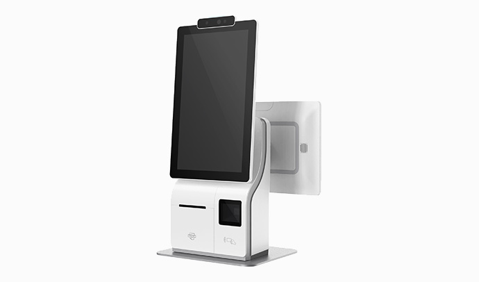 雙屏自助收銀設(shè)備,實現(xiàn)人工和自助兩種使用場景,將收銀POS和自助收銀設(shè)備合二為一,極大的節(jié)約人力成本和空間。